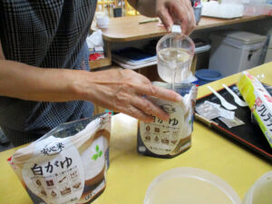 ファミニュー亀山の介護スタッフが、備蓄食材を使ってお昼ご飯の用意です😅