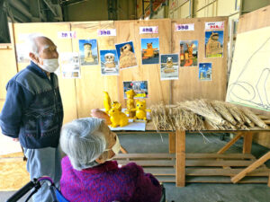 隣では、代々の「わらアート」の紹介と、「わらアート」の作り方の解説、