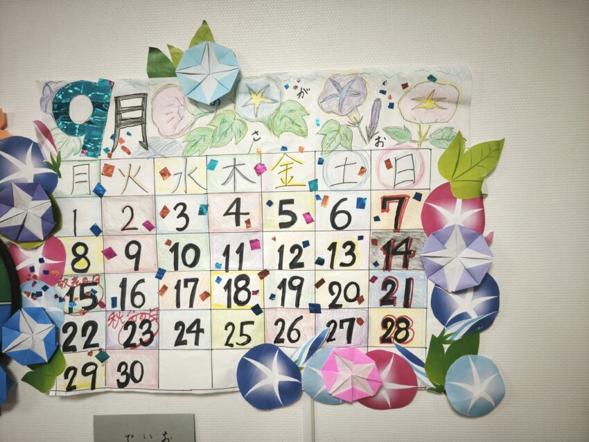 9月のカレンダー:朝顔が咲き誇る合作アート