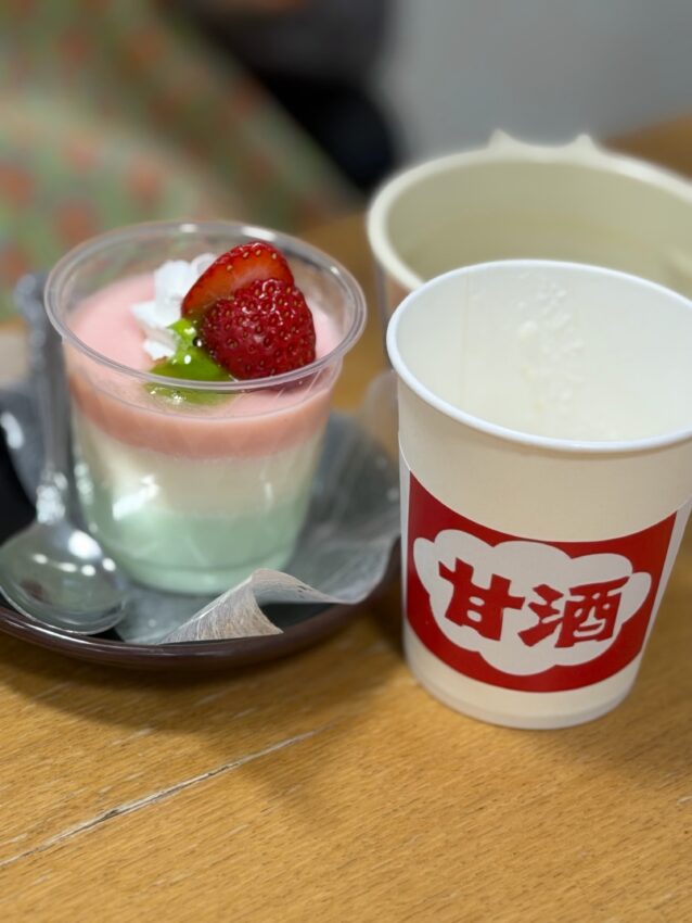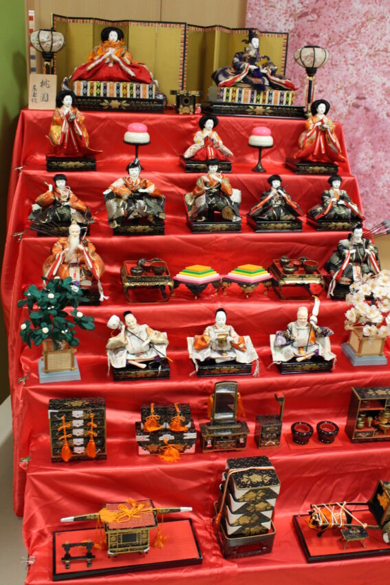 おやつと甘酒、ひな壇で写真を撮り、