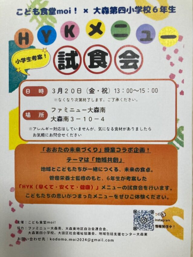 その御父母、NPO法人のこども食堂moiと大森東特別出張所職員。