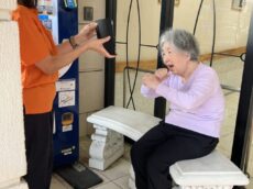 ファミニュー石神井のご入居者様が一丸となって折り紙で鶴を折っています。