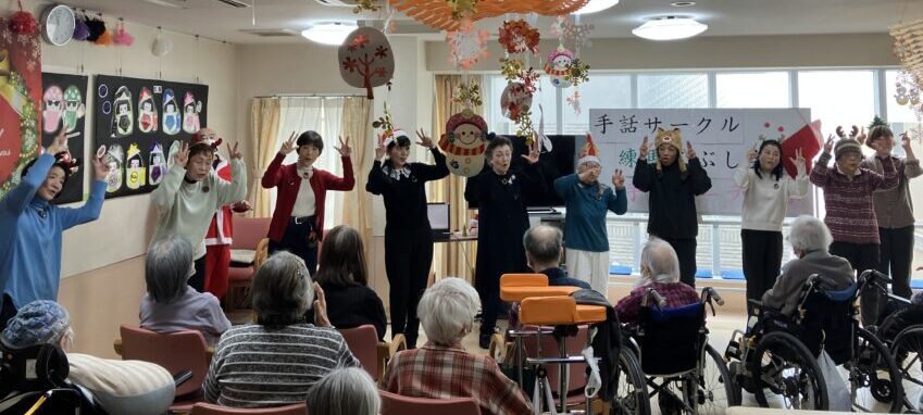 手話表現のレクチャーもありご入居者の皆様も一緒に手話で歌を楽しみました🎄