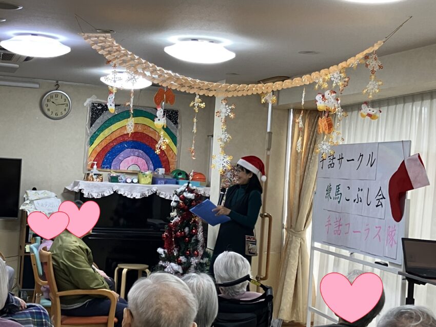 今回初めて「手話サークル 練馬こぶし会 手話コーラス隊」にクリスマス会へボランティア参加いただきました(サークル員である理学療法士の紹介でご縁がつながりました)