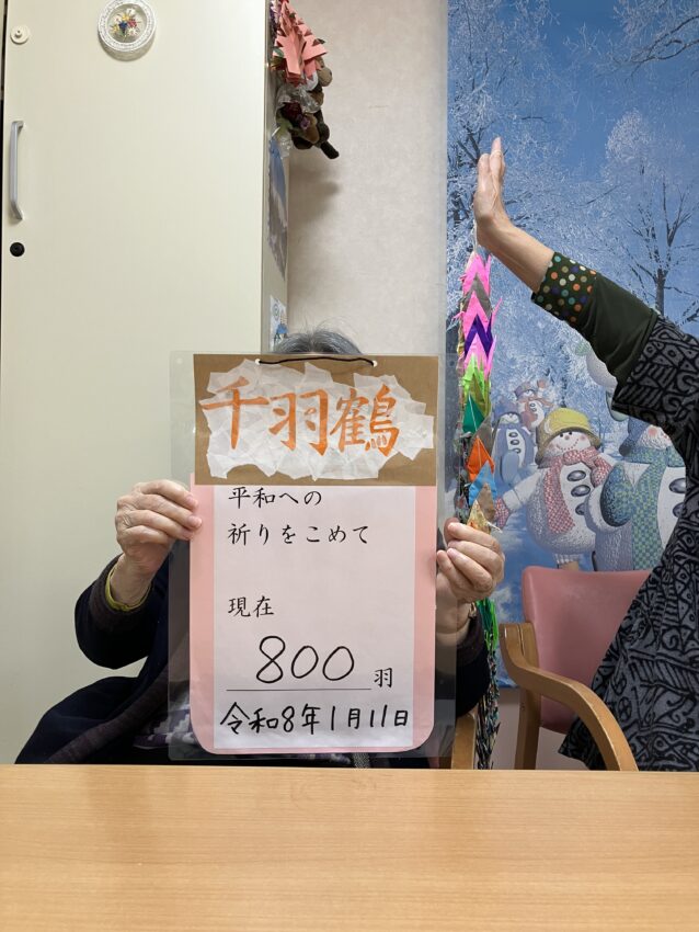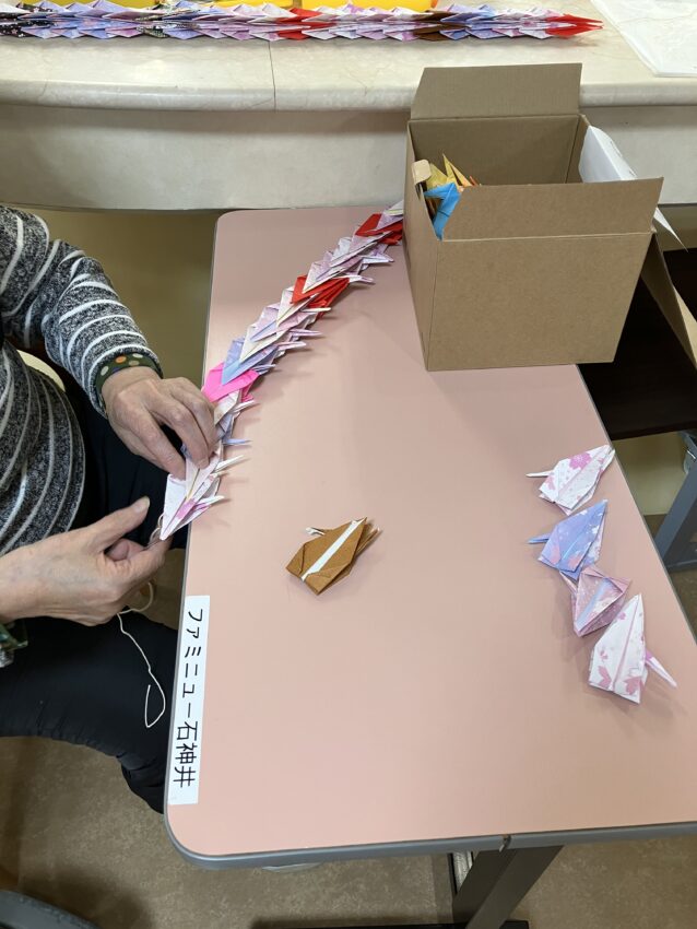 折り紙で創作活動②↓↓ 「千羽鶴を折りたい」との思いからスタートまでの様子はこちらをご覧ください