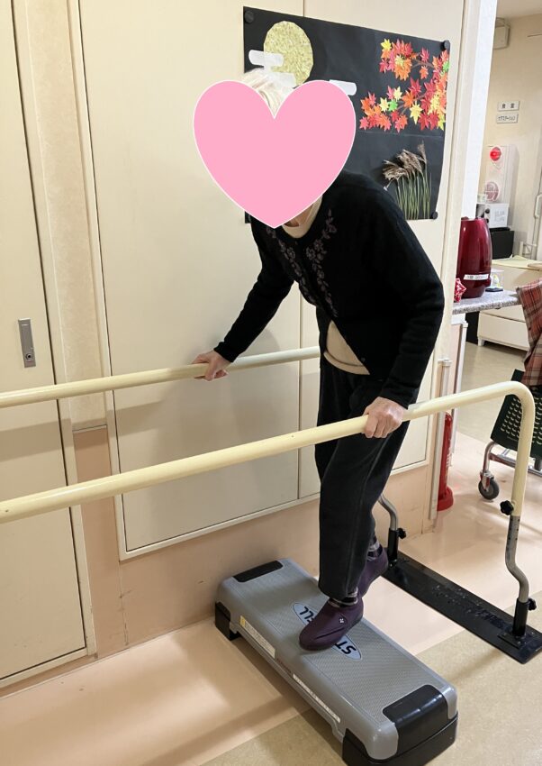 👣散歩を続けるため、ステップ台を昇降、下肢筋力とバランス強化中👣