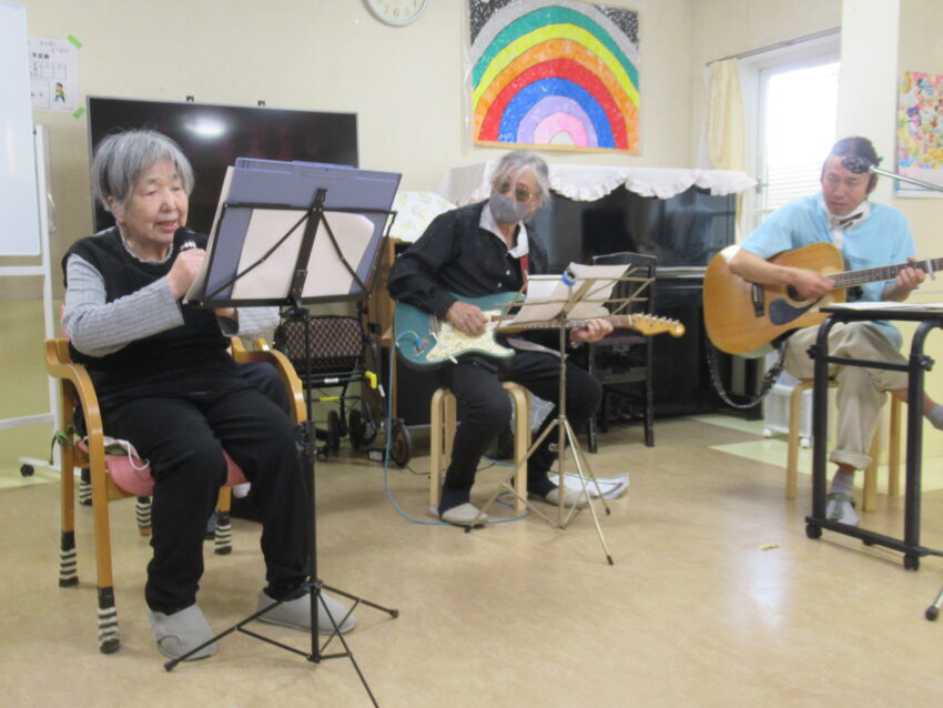 3月15日(日)、フロアにて音楽レクリエーション「おいちゃんとリュ→ジ 生バンドでみんなで歌おう!」を開催しました。
