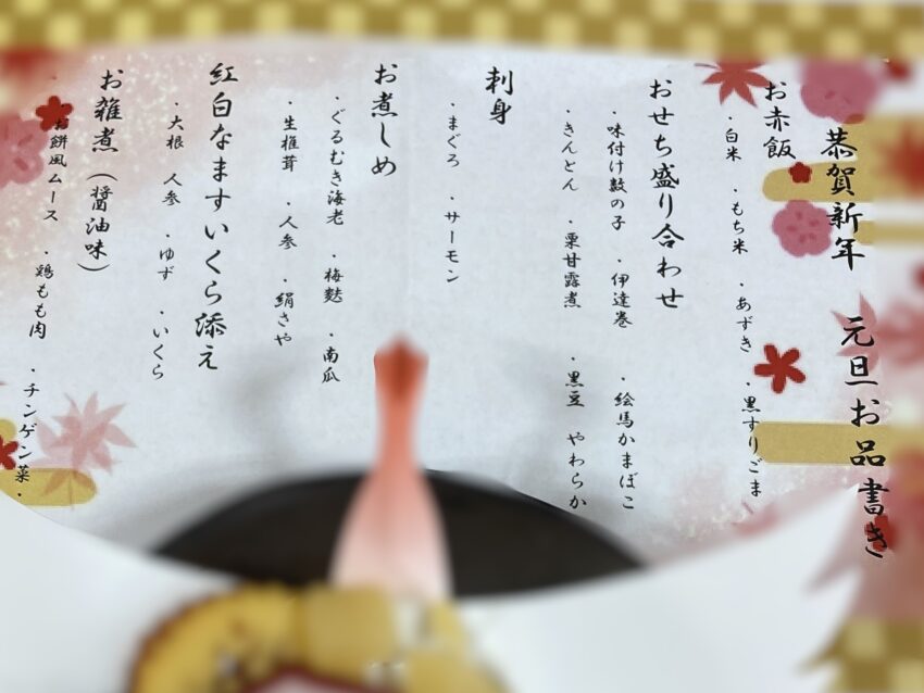 お品書きを眺めたり、料理を味わったりと、それぞれのペースで穏やかな元旦を過ごされていました。