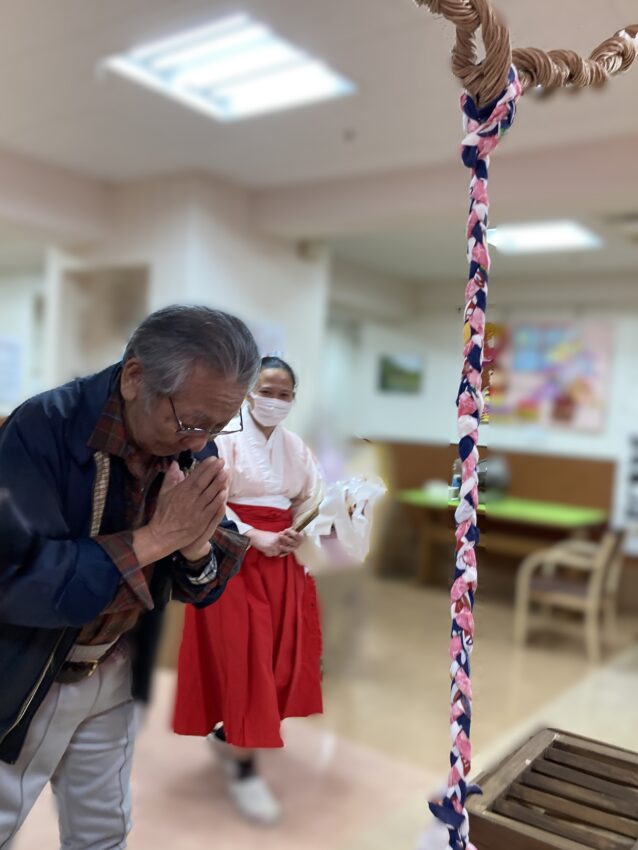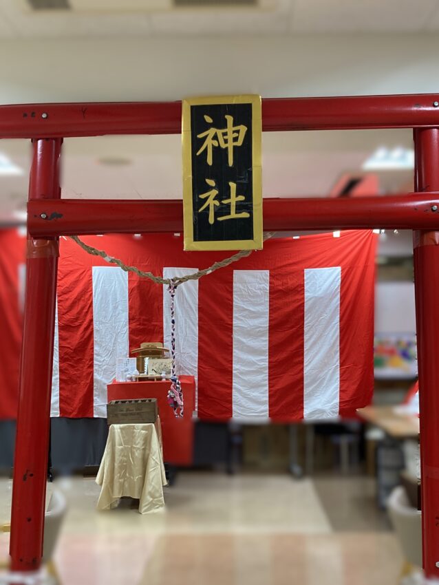 先日、施設内に手作りの神社と鳥居を設け、初詣を行いました。